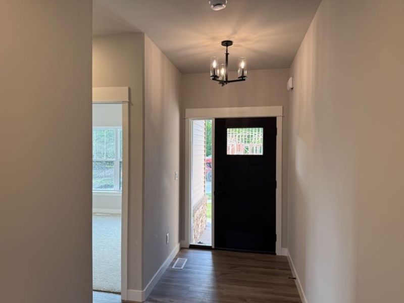 PHOTOS OF A SIMILAR PROPERTY. DESIGN & FINISHES WILL VARY. This welcoming floor plan features a kitchen with tile backslash, hard surface counter tops, island with breakfast bar seating, stainless steel appliances with gas range. Microwave Oven IS VENTED TO THE EXTERIOR. Covered deck with steps down to the backyard off of the dining area. Trey ceiling in the great room with ceiling beams and a gas fireplace with floor to ceiling stone surround. Dark trim throughout. Primary suite ceiling will be accented with crown molding around the perimeter with hidden rope lighting controlled with a dimmer switch. Also a private bathroom with a tiled shower, double sinks, and a walk-in closet. Walkout lower level has a huge family room with a snack/wet bar sink area with cabinets and space for a full sized refrigerator (not included), bedrooms 4 and 5, and another full bathroom.