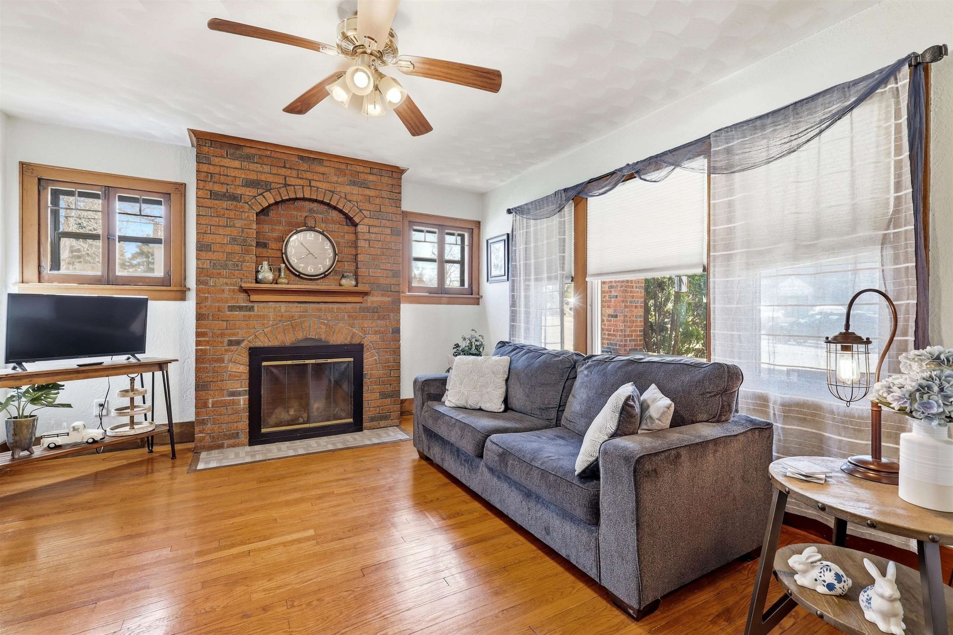 This all-brick two-story home is full of charm from the moment you step inside. Beautiful wood floors and trim create a warm, inviting feel, while the spacious layout offers everyday comfort. With approximately 1,364 square feet of living space, the main floor features a bright kitchen with wood cabinetry, stainless steel appliances, and an island that adds valuable counter space. The dining and living areas are filled with natural light and flow seamlessly-perfect for entertaining. Upstairs, you'll find three comfortable bedrooms and a full bath. The clean, unfinished lower level provides great storage, laundry, an additional bath, and exciting potential for future finished space. Enjoy quiet mornings or evenings on one of the two open-air porches . Outside, you'll love the convenience of off-street parking and a handy storage shed for all your extras. This home has been pre-inspected for your convenience. Room measurements are approx and should be verified if important.