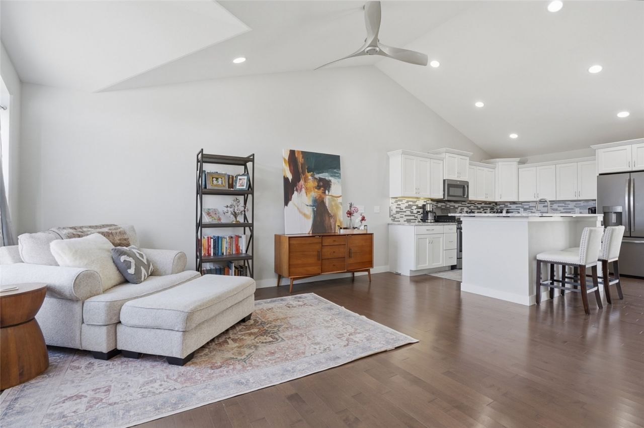 This SUPER NICE east side multilevel offers stylish finishes and exceptional space throughout! From the moment you step inside, you're welcomed by soaring vaulted ceilings and beautiful wood floors that flow through the bright front living area into the stunning white kitchen. The kitchen features quartz countertops, tile backsplash, stainless steel appliances, and a breakfast bar, with an adjoining dining area that opens to the deck. The spacious family room showcases a cozy gas fireplace and walks out to the patio, creating multiple indoor and outdoor gathering spaces. Just off the 3-car garage, you'll find a convenient drop zone with lockers and a half bath. Upstairs, the vaulted primary suite offers a large walk-in closet and private bath with dual vanities and a walk-in shower. Two additional bedrooms share a full bath, plus a well-equipped laundry room with cabinetry. The lower level provides even more flexibility with a bonus living area, 4th bedroom, full bath, and storage. Located on the desirable east side near parks and trails, this move-in ready home also includes a swing set with a framed mulch area that's ready to enjoy!