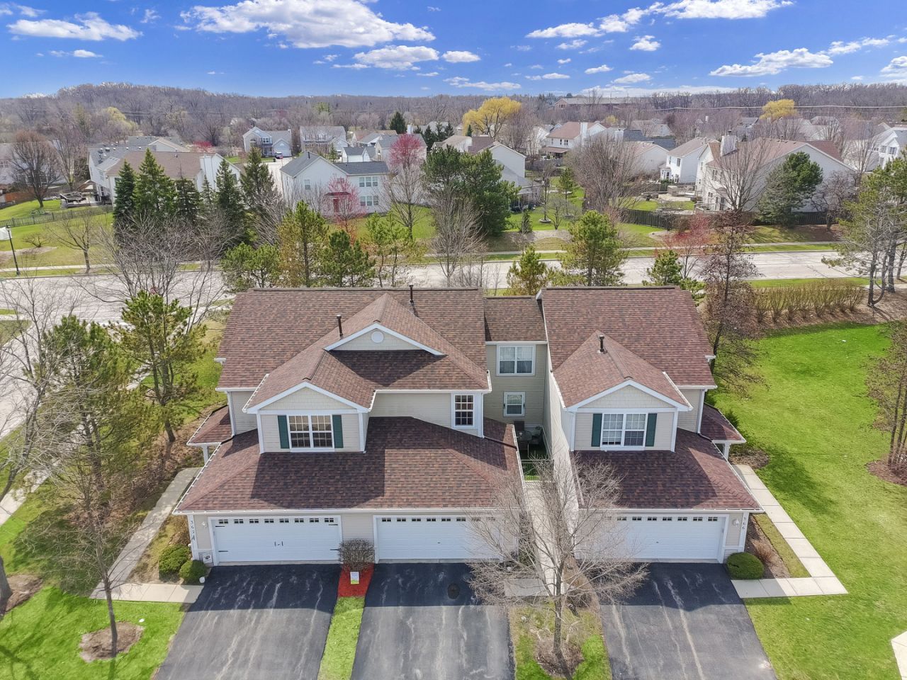 Welcome home to this bright and spacious 2 bedroom + loft, 2.5 bath end-unit townhome. The updated kitchen features freshly painted cabinetry, a modern backsplash, and stainless steel appliances that flows seamlessly into the main living space. Step outside to a paver patio just off the kitchen, ideal for relaxing or hosting. Natural light pours in thanks to the end-unit location, creating a warm atmosphere, along with a lovely cross breeze throughout. Upstairs, you'll find a generous loft and a bonus office/flex room, ideal for working from home or additional closet/ storage. The large primary bedroom features a walk-in closet, adjoining primary bath with a soaker tub + double sinks. Enjoy first floor laundry with additional storage tucked under the stairs. Community amenities include: walking distance to Heron View Park, Big Hollows School District & quick commute to Home Depot, Aldis, Jewel + more! Many updates throughout to give you peace of mind.