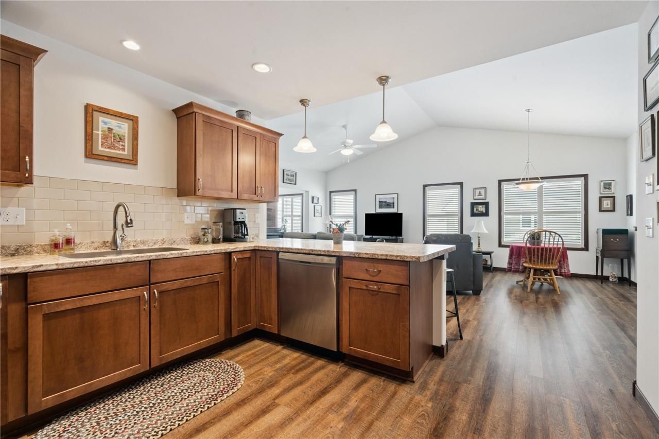 Welcome to this beautifully designed end-unit condo, where simplified living meets the spacious feel of a single family home. The zero-entry layout provides seamless accessibility featuring an open-concept design, perfect for both entertaining and everyday living with a large kitchen that flows into the family room and dedicated office/den for the perfect place to work from home or enjoy quiet moments. The main level features private master and en-suite bath w/ dual sinks, walk-in shower, and ample closet space plus 2nd bed/bath for family and visitors. But the real bonus? The walk-out basement w/ over 1,300sf of added space. Framed and rough-plumbed for a 3rd bed/bath, it is a blank canvas offering endless possibilities - extra living space, home theater, personal gym? This home combines the space of a single-family house w/ the lock-and-leave lifestyle of a condo.