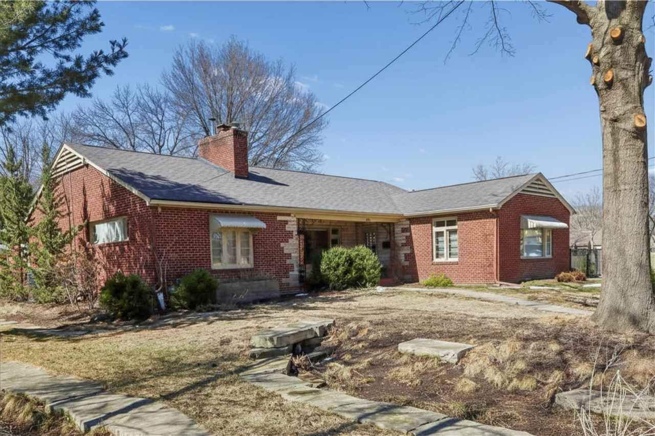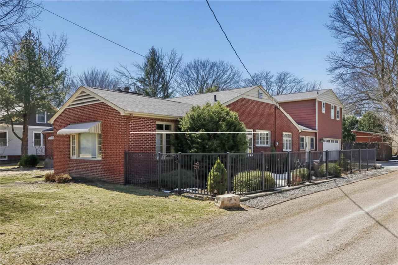 Midcentury ranch in Manville Heights, close to Hancher Auditorium, City Park, Iowa Health Care's main hospital, the VA, the UI medical campus, and the pedestrian bridges to downtown Iowa City. The handsome brick exterior, with timeless awnings and subtle midcentury detailing, opens to a main living area that runs the width of the home. Connected living and dining spaces, LVP floors over concrete, a broad picture window, and a stone fireplace wall give the room its character. French doors lead to a concrete patio with stone table and low stone knee walls, while a stone path continues to a separate masonry firepit area. A screened porch sits just off the living area. The kitchen was remodeled by McDonough Structures in 2006 and stands apart, with extensive cabinetry, curved lines, an island with integrated range, and an adjacent eat-in area. Windows over the sink and a large picture window look out to a fenced side garden with a meandering stone path. Three bedrooms are located on the main, including one currently used as a den. The full bath and two main level full baths retain vintage tile. A mudroom and breezeway connect to the two-car garage and provide access to the 1-bedroom, 1-bath studio apartment above. The lower level includes a family room, an additional bedroom, full bath, bonus space, and two unfinished storage areas.
