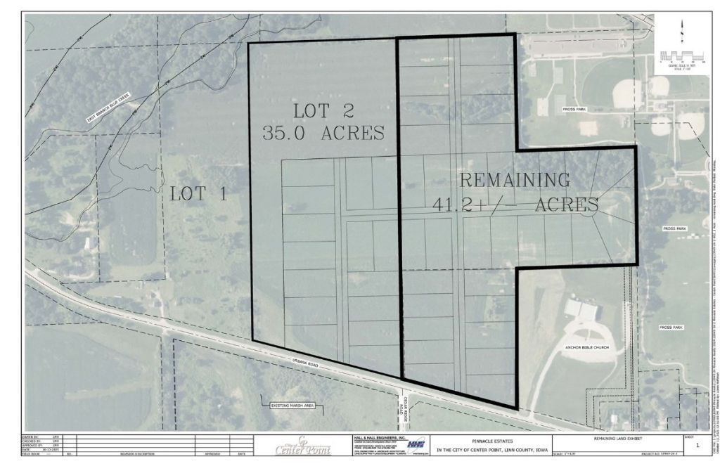 1 acre lot development concept but could be split into 2 parcels. 76.2acres of prime development ground on the NW side of Center Point. Borders Fross Park and is within a few blocks of Center Point Urbana Elementary, Middle and High Schools. 8 Water and 8 Sanitary mains are only a couple blocks away. (stop by the church next door). Engineer would need to verify sizing depending on the development plan. 3D Virtual Tour Link: https://tours.picyourhouse.net/tours/F057vHGgk