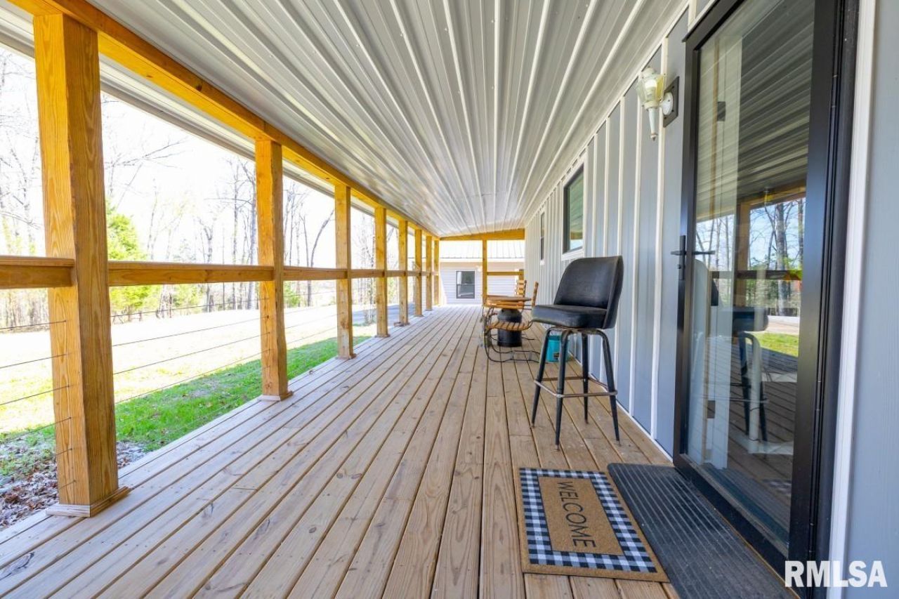 This 112± acre property in Massac County, Illinois offers a beautiful blend of comfortable country living, scenic water features, and quality hunting acreage. With a well-maintained home, multiple outbuildings, and a stocked lake set against a backdrop of rolling timber, this property provides an ideal setup for a full-time residence or recreational retreat. The 1,240 square foot home features a spacious and inviting layout with a large living area highlighted by a stone-faced gas fireplace. The kitchen offers ample cabinet and countertop space and flows into a dedicated dining area. The home includes one bedroom, one bathroom, and a combined laundry space, along with a covered front porch and a screened-in back porch that overlooks the lake?perfect for enjoying the peaceful setting. The property is well-equipped with improvements, including a 42x36 detached three-bay garage with heat, concrete floor, half bath, and an interior room for additional storage or workspace. A 24x40 detached shop provides further utility, while a whole-home generator ensures reliability. A gravel drive and parking area lead into a large, manicured yard shaded by mature trees. A centerpiece of the property is the 2.5± acre stocked lake, offering excellent fishing for bass, bluegill, and catfish. A large dock provides easy access to the water and creates a great setting for relaxing or entertaining. Approximately 108± acres of wooded ground features gently rolling topography. Call today!!