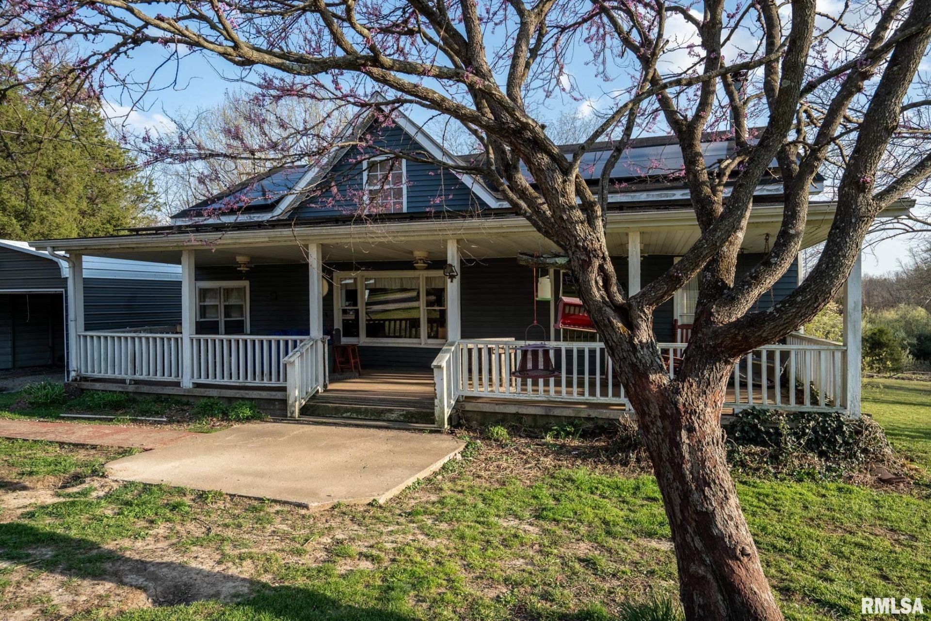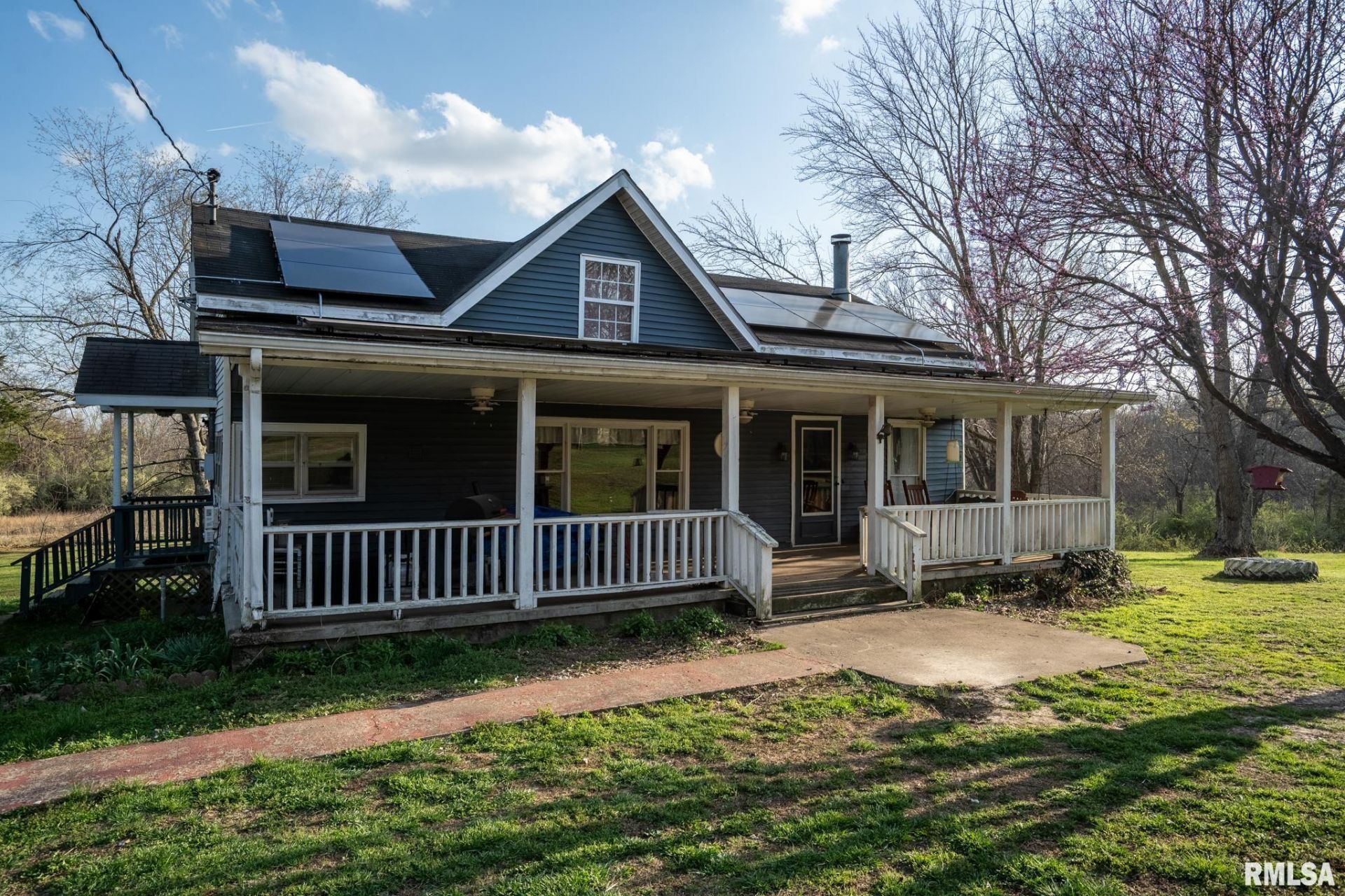 Welcome to your own slice of Southern Illinois paradise! This beautiful 10-acre property near Harrisburg Lake offers the perfect blend of peaceful living and outdoor adventure. Whether you're dreaming of a homestead, a hunting retreat, or a quiet escape, this property delivers. Surrounded by abundant wildlife, its truly a hunters dream. Enjoy your private 1-acre pond with a charming dock, or take a short 1/8-mile stroll to the lake?clear a few trees and you could have a stunning water view right from your property. The home features a massive covered front porch complete with a swing and rocking chairs that stay. Inside, the spacious living room is filled with natural light and includes a cozy wood-burning fireplace. The dining area offers scenic views, and the kitchen provides ample cabinet space. An upstairs bedroom and loft add flexibility. Out back, a large deck is perfect for relaxing or entertaining. A newer 2-car detached garage, a new large heat pump, and solar panels that will be owned free and clear at closing add value and efficiency. The home could use a little TLC, but with its setting and potential, this is a rare opportunity you dont want to miss! Call today for a showing!