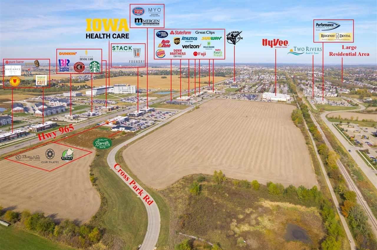 This 2.69-acre lot of C2 has all utilities to the lot and is in an amazing location just off US Hwy #965 and Forever Green Road. The price comes out to just $10 per foot, so it's below recent land sales prices. Please look at the amazing aerial photos and you'll see the new University hospital directly across Hwy #965 to the west, Hy-Vee and Forever Green Road just to the north, the U of I Research Park directly to the south and banks, food venues, coffee shops, retail stores and new personal service locations all around this area. Looking west across the hospital and along Forever Green Road, you'll find Tiffin in the distance with I-380 and Steindler Clinic clearly visible. There is also an abundance of attached and single-family housing with Middle and Elementary schools nearby, too. Lots 10 and 12 just recently sold to growing area businesses.