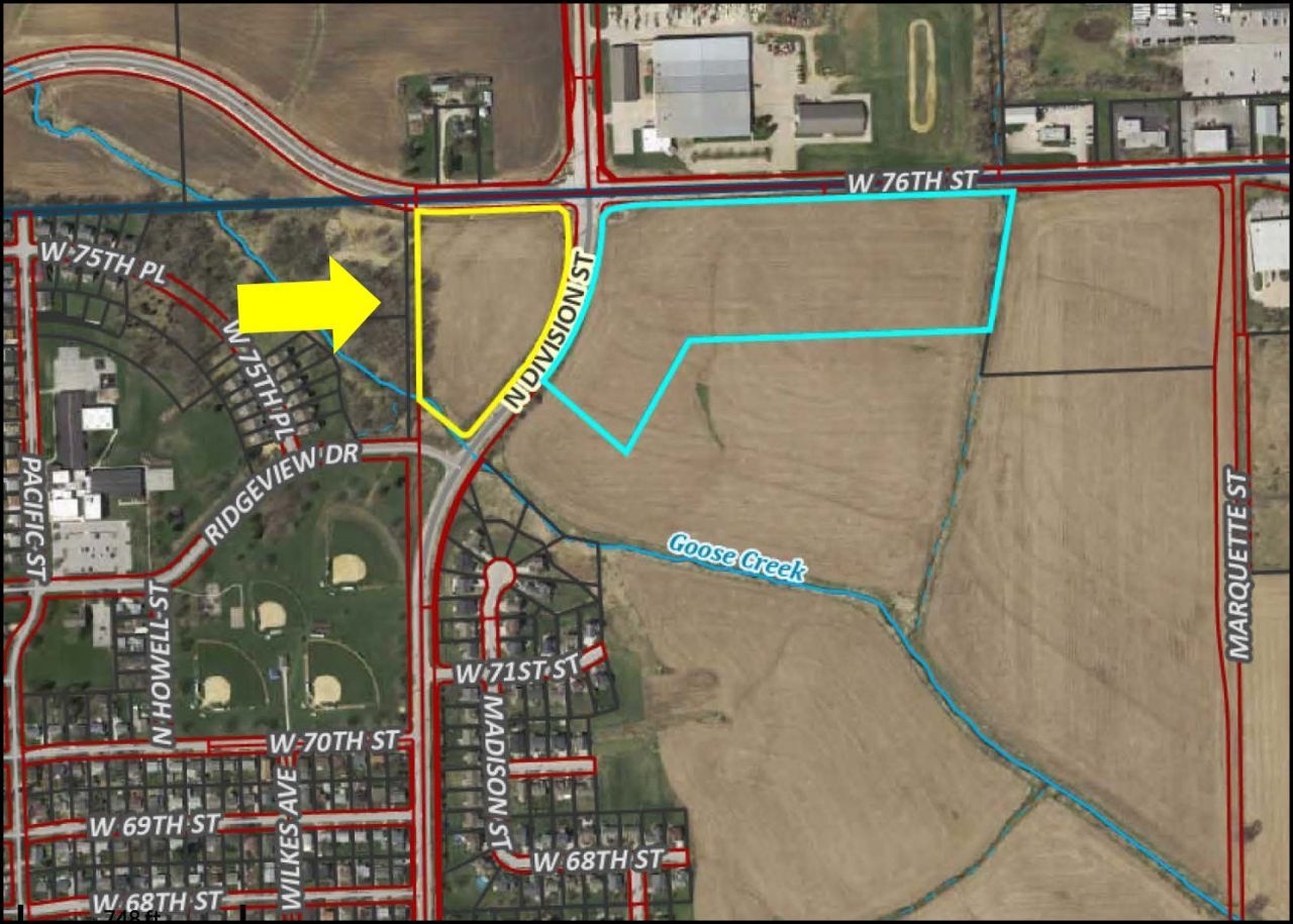 NEW PRICE - Multi-Family & Commercial Hard-Corners located 1 mile South of the New Amazon Fulfillment Center and Davenport Municipal Airport and just south of I-80. Approximately 7.72 Dividable Acres in the S.W.Q of North Division and W 76th St. Additional Residential and Commercial Acres Available. Permitted District uses include Children's home, Community or Garden Centers, Daycare Center or Home, Domestic Violence Shelter. Multifamily and Townhouse Dwellings, Educational Facilities. Church, Park, Public Safety Facilities. Residential Care and Telecommunications Towers. Other uses allowed with Special Permit. Re-Zoning is possible. Possession is subject to Tenant Farm Rights.